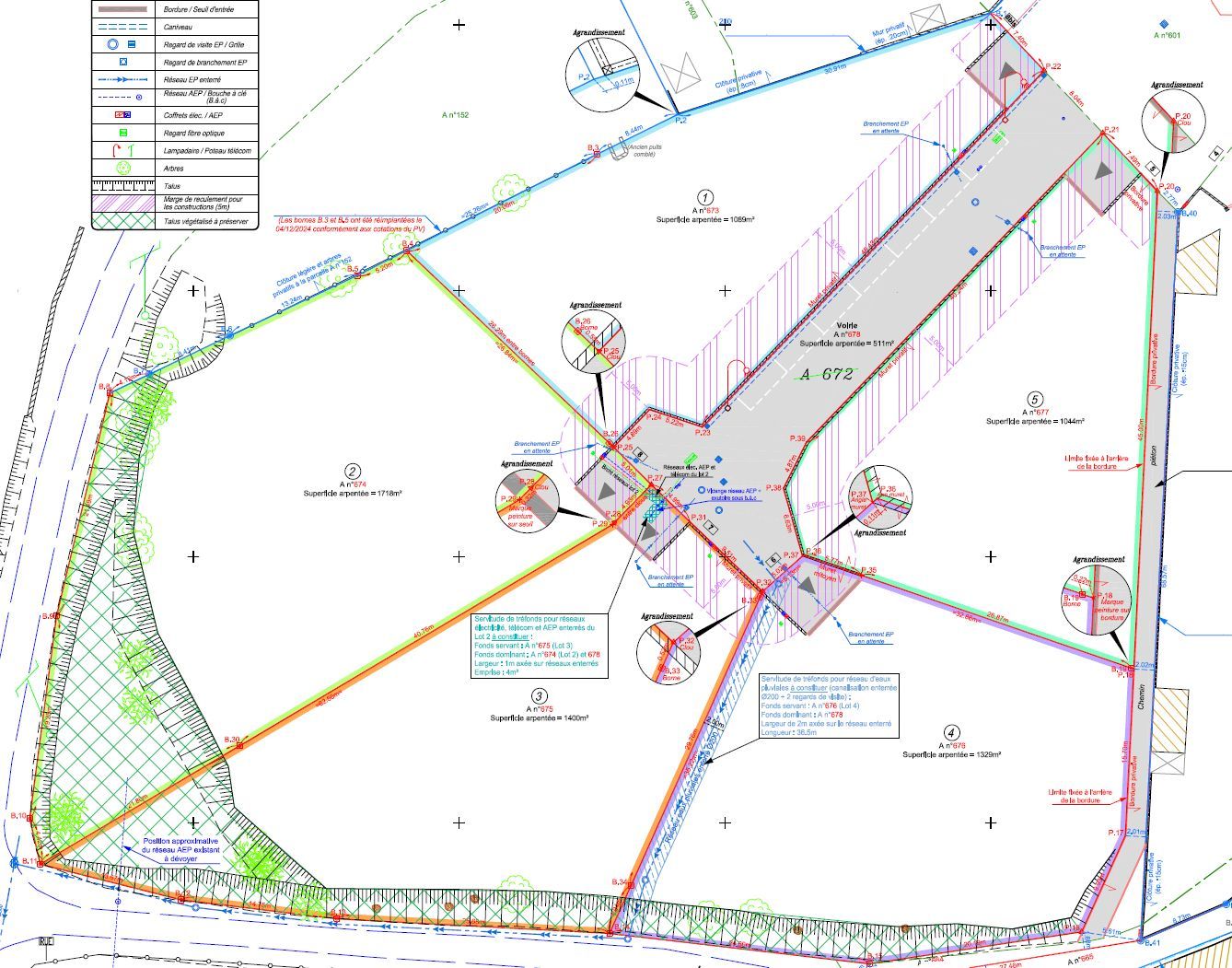 Chaque lot est vendu viabilisé avec les raccordements en eau potable, électricité et télécom déjà installés en bordure de propriété. Il vous appartiendra simplement de compléter l'installation par un dispositif d'assainissement autonome selon votre projet.